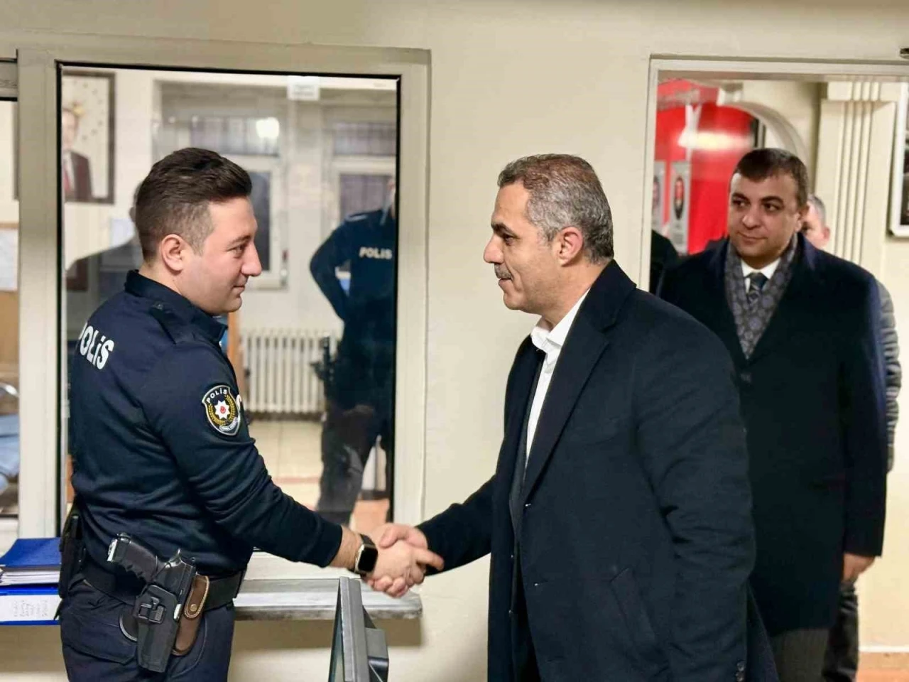 Batman’da, AK Parti Batman İl Başkanı Hüseyin Şansi, AK Parti MKYK Üyesi Murat Çiçek ve Merkez İlçe Başkanı, yeni yıla güvenle girmeyi hedefleyen vatandaşlar için görev başında olan polis memurlarını ziyaret etti. Şehit Yıldız Işılakça Polis Merkezi ve Şehit Özkan Kocaer Polis Merkezini ziyaret eden AK Parti yöneticileri, burada polislerle tokalaşarak başarılar diledi ve onlarla çay içerek sohbet etti.
