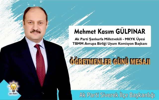 Avrupa Birliği Uyum Komisyonu Başkanı, AK Parti Merkez Karar Yürütme Kurulu Üyesi, Şanlıurfa Milletvekili Mehmet Kasım Gülpınar, 24 Kasım Öğretmenler Günü ile ilgili bir mesaj yayınladı.