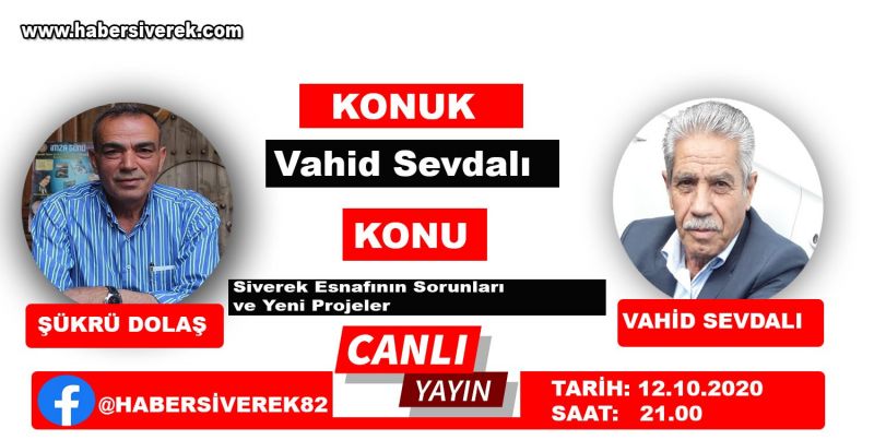 Her hafta Salı akşamı saat 21.00’da usta gazeteci yazar Şükrü Dolaş tarafından Haber Siverek’te canlı olarak sunulan ‘Bir Konuk Bir Çok Konuk’ programın konuğu Siverek Gıda Odaları Başkanı Vahit Sevdalı olacak.