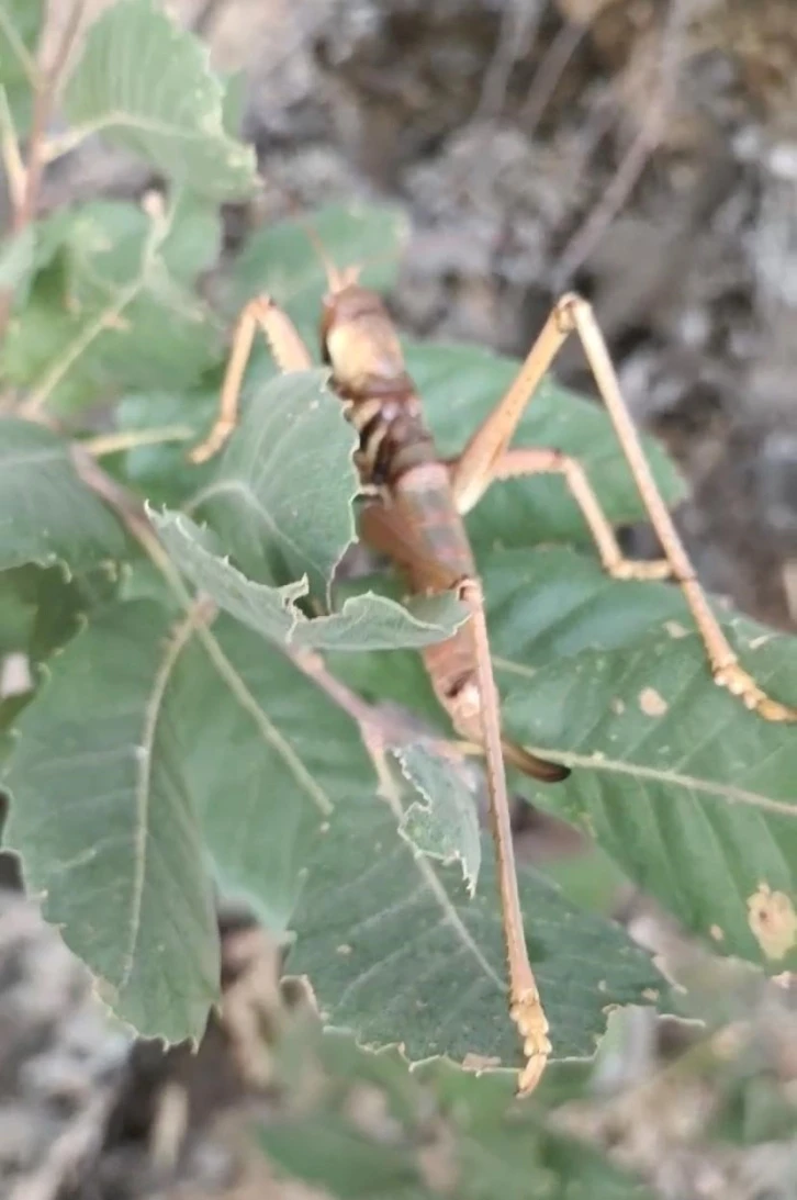 "Boyları 20 santimetreye kadar ulaşabilen bu tür, özellikle geceleri avlanan etçil çekirge olarak biliniyor." İHA