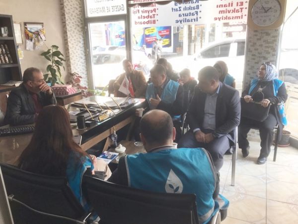 Genel merkezden gelen bir heyet ilçede esnaf ve gazetecileri ziyaret ederek bir süre görüştü
