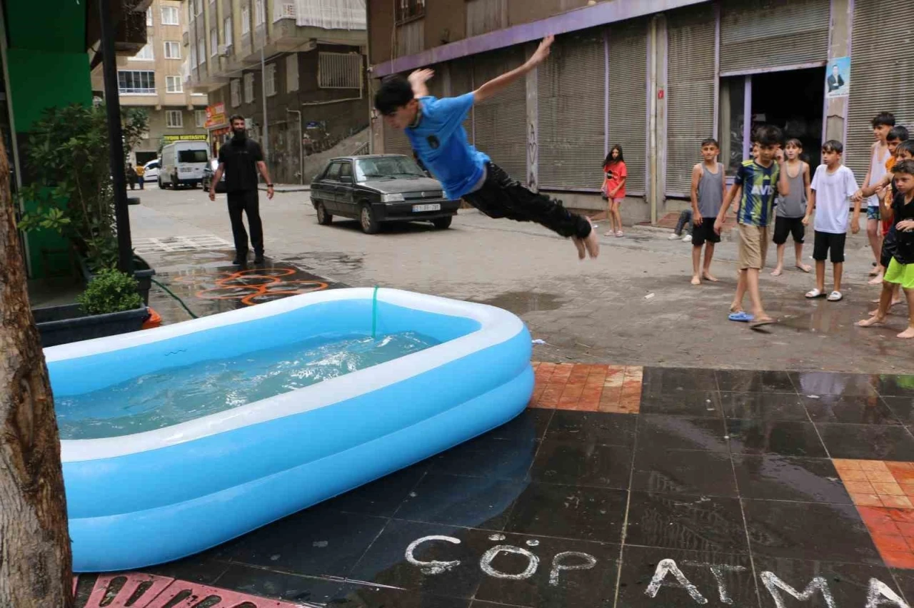 Gün boyunca çocukların oyun alanı haline gelen şişme havuz, sıcakların etkisini kırmanın yanı sıra, mahallede bir sosyal paylaşım alanına da dönüştü. Bu örnek davranış, birçok mahalle sakini tarafından memnuniyetle karşılandı.