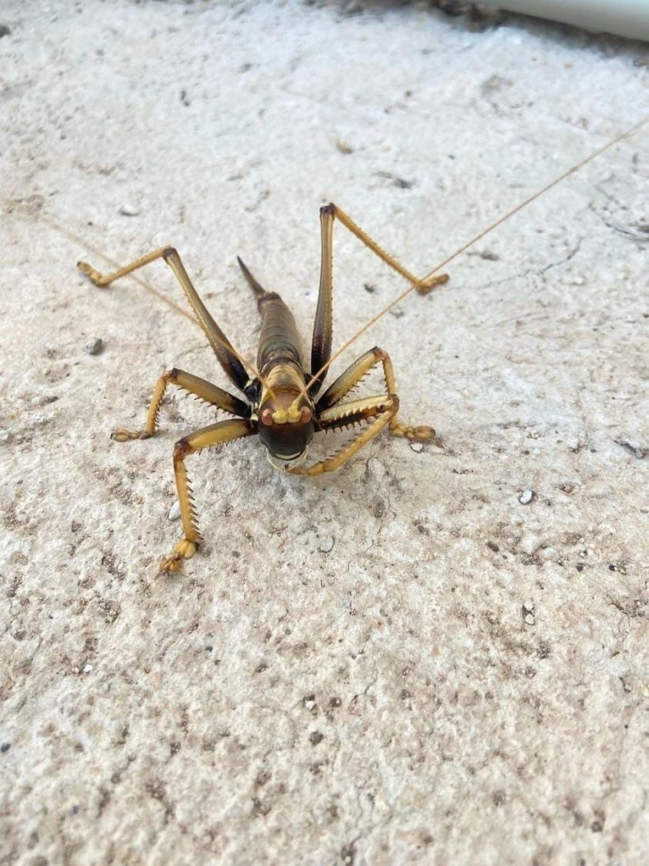 MARDİN - Mardin’in Kızıltepe ilçesinde yaşayan bir vatandaş, bahçesinde yaklaşık 20 santimlik dev etçil çekirge ile karşılaştı. Böylesine büyük bir çekirgeyle ilk kez karşılaşan vatandaş, çekirgenin zararlı olmadığını öğrendi ve durumu cep telefonu ile kaydetti.