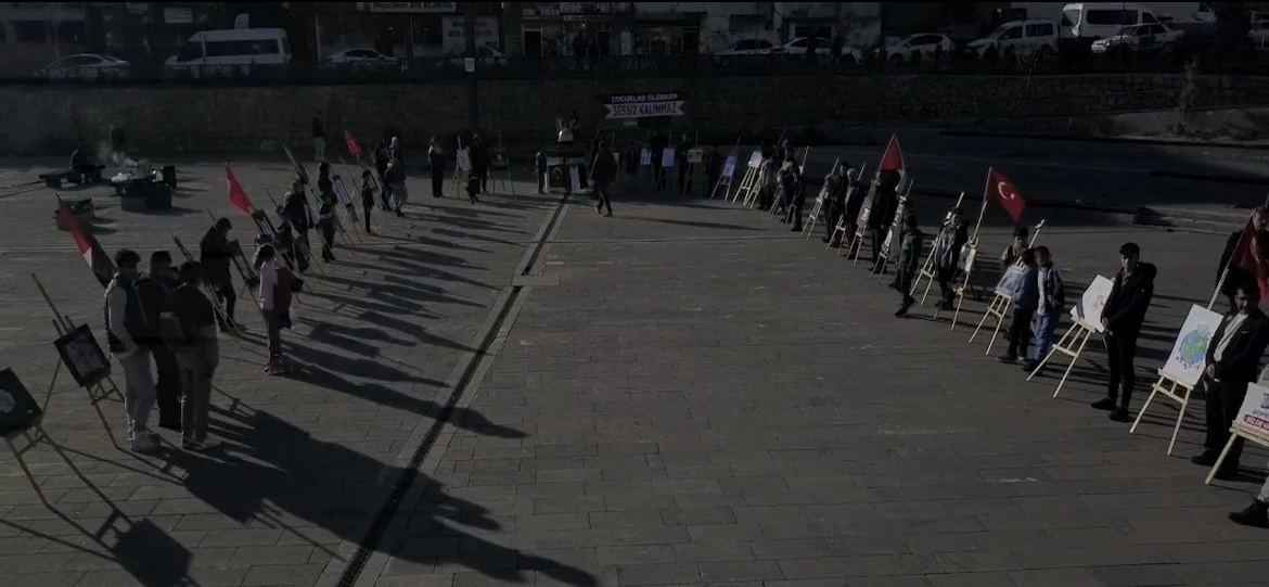 Diyarbakır’ın Silvan ilçesinde, Şehit Özkan Özendi Anadolu İmam Hatip Lisesi tarafından düzenlenen "Çocuklar Ölürken Sessiz Kalınmaz" temalı resim sergisi, ziyaretçilere duygusal bir yolculuk sunuyor. Sergi, Gazze’deki zulme dikkat çekmek amacıyla öğrenciler tarafından hazırlanan resimlerden oluşuyor. Silvan 1. Kılıçarslan Kent Meydanı’nda açılan sergide, farklı okullardan gelen öğrencilerin sanatsal bakış açılarıyla ortaya koydukları eserler yer aldı.