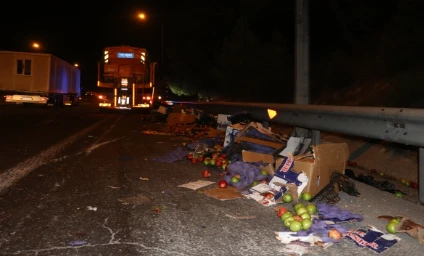 Kazada çarpışan araçlardan biri meyve yüklüydü ve çarpışmanın etkisiyle araçta bulunan meyveler yola saçıldı. Bu durum, kazanın ardından trafiği daha da zorlaştırdı. Ekipler, yola dökülen meyveleri temizlemek için yoğun bir çalışma gerçekleştirdi. Meyvelerin toplanmasının ardından, trafik kontrollü bir şekilde tekrar açıldı.
