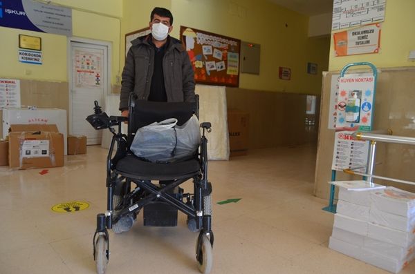 Kadıköy Belediyesinin öncülük ettiği yardım kampanyası kapsamında gönüllülerce temin edilen akülü sandalye ile diğer malzemeler, okulda eğitim gören öğrencilere dağıtıldı.