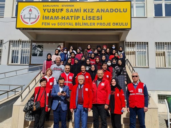 Malzeme dağıtımından önce Karacadağ Anadolu Lisesi ile Yusuf Sami imam hatip kız lisesinde ki öğrencilere Kızılay faaliyetlerini tanıtan seminer programı düzenlendi.