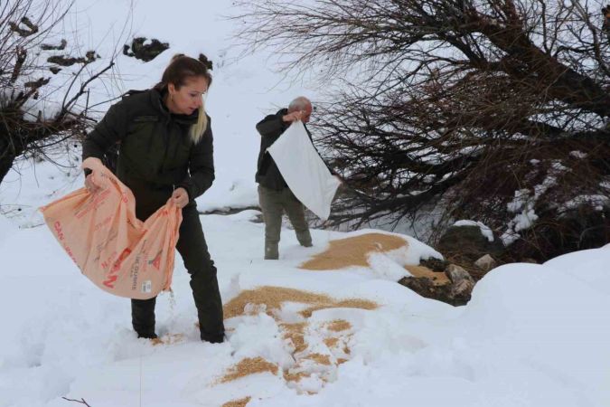 Maden köyü ve çevresindeki dağlık alanlar, yoğun kar yağışı nedeniyle adeta beyaz bir örtüyle kaplandı. Bu durum, yaban hayatını olumsuz etkileyerek, hayvanların doğal yiyecek kaynaklarına ulaşmalarını zorlaştırdı. Ekipler, bu sorunu hafifletmek için 500 kilogram buğday, arpa, mısır ve 350kilogram pazar artığı ekmek dağıttı.