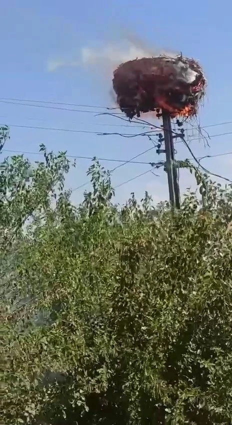 Adıyaman’ın merkeze bağlı Bozhöyük Köyü’nde yaşanan talihsiz olay, köy sakinlerini büyük bir üzüntüye boğdu. Bardakçı Mezrası’nda, elektrik direği üzerine leylekler tarafından yapılan yuva, elektrik tellerine temas etmesi sonucu alev aldı. Alevlerin kısa sürede büyümesiyle, yuva cayır cayır yanmaya başladı. Köylüler, yangını fark ettiklerinde çaresizlik içinde yangının büyümesini izlemek zorunda kaldı.