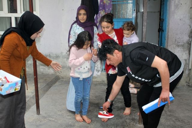 Siverek İlçesinde Uyuşturucuyla Mücadele etmek gençleri uyuşturucudan korumak amacıyla kurulan Kumed Siverek İlçe başkanlığına Kentte ihtiyaç sahibi ailelere ayakkabı yardımında bulundu.