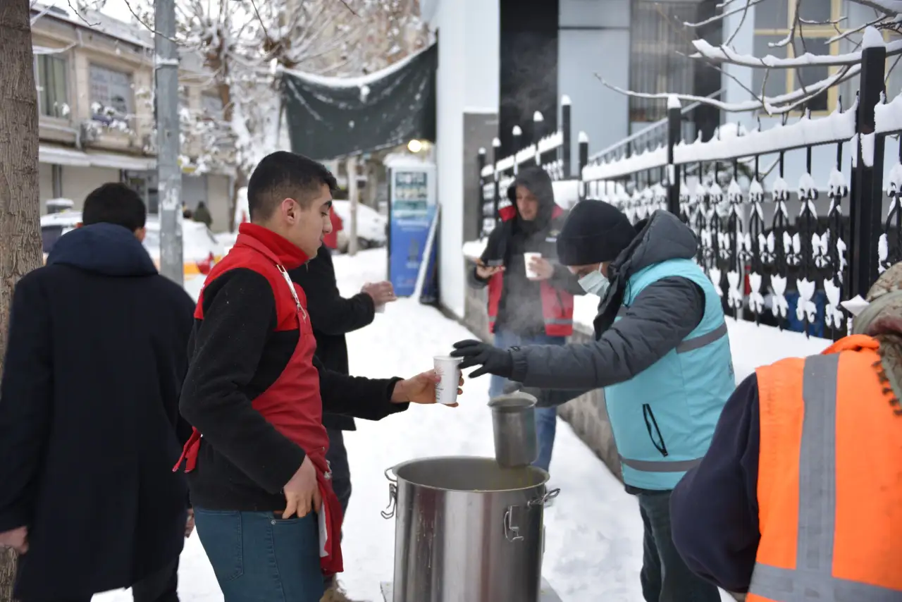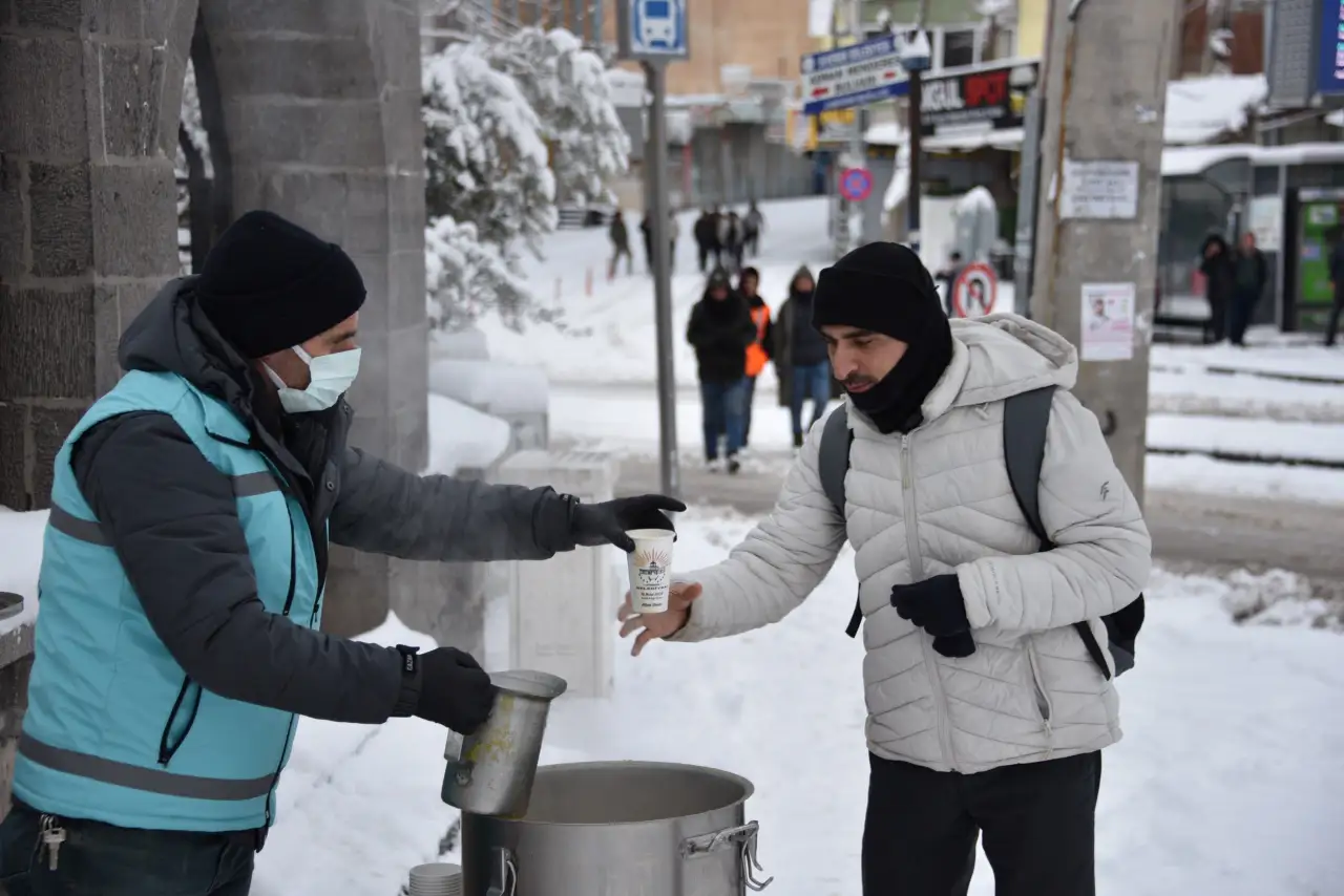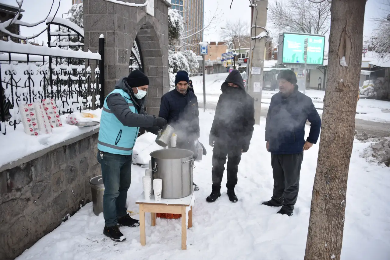 Karın etkisini artırarak ilçeyi adeta beyaz bir sessizliğe bürümesiyle birlikte, fen işlerinden sosyal hizmetlere kadar yüzlerce personel görev yerlerine ulaştı. Yolların açık tutulması için yürütülen teknik operasyonlara paralel olarak, kışın dondurucu etkisini kırmak adına insani bir dokunuş başlatıldı. Özellikle dondurucu ayazın en keskin hissedildiği sabah saatlerinde, hayatın akışını kolaylaştırmak ve kadim Anadolu dayanışmasını canlandırmak amacıyla belediyenin dev kazanları erkenden ateşe verildi.