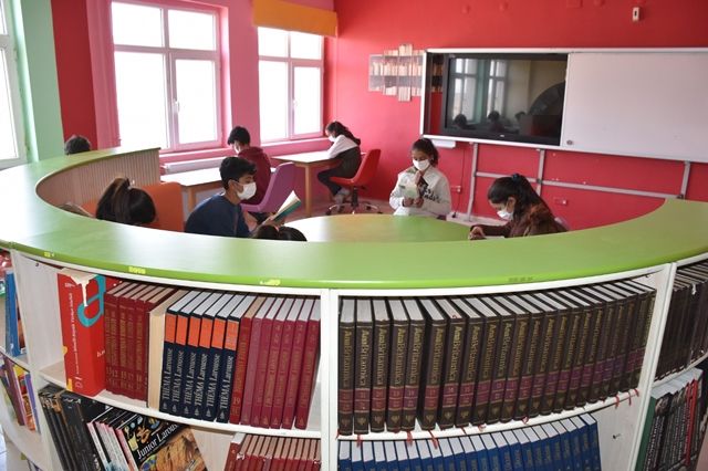 Meslek Lisesi öğrencileri okul atölyesinde atık malzemelerden tasarlayarak işledikleri kütüphane raflarını, İlçe Milli Eğitim Müdürlüğü tarafından belirlen köy okullarında kurmaya başladı. İlçeye bağlı Taşlı Kırsal Mahallesinde bulunan Şehit Mahmut Elçi İlk ve Ortaokulu’nda ilk kütüphaneyi kuran öğrenciler, el emeği göz nuru çalışmalarının köy öğrencileri tarafından kullanılmasının sevincini yaşadı.