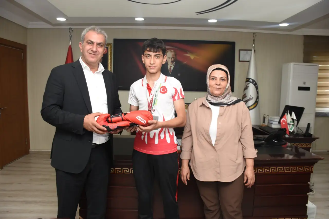 Osman Demir, hocasıyla birlikte Hilvan Belediyesi Eşbaşkanları Serhan Paydaş ve Garip Yeşil’i ziyaret etti. Başkanlar, genç sporcuyu makamlarında ağırlayarak tebriklerini iletti. “Her zaman genç sporcularımızın yanındayız, başarılarının destekçisi olacağız” diyen eşbaşkanlar, spora verilen desteğin artarak süreceğini vurguladı.