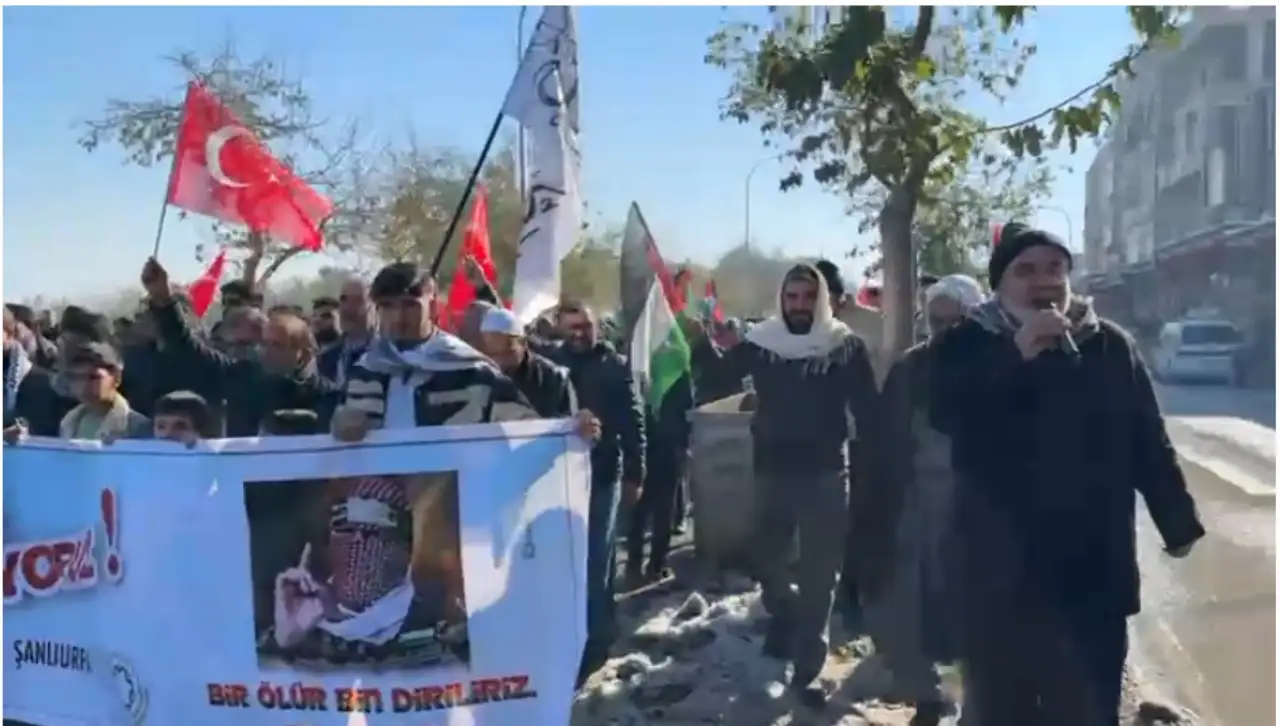 Yürüyüş güzergahı boyunca buz tutmuş kaldırımlar ve kaygan zeminler katılımcılar için zorlu birer engel teşkil etse de, genç yaşlı demeden binlerce kişi bir an bile tereddüt etmeden Harran Kapı’ya doğru ilerledi. Şanlıurfa’nın tarihi sokaklarında yankılanan sloganlar, Filistin meselesinin sadece coğrafi bir çatışma değil, küresel bir vicdan meselesi olduğunu bir kez daha hatırlattı. Katılımcılar, dondurucu rüzgara karşı birbirlerine kenetlenerek mazlumların sesi olma görevini büyük bir vakarla yerine getirdi.