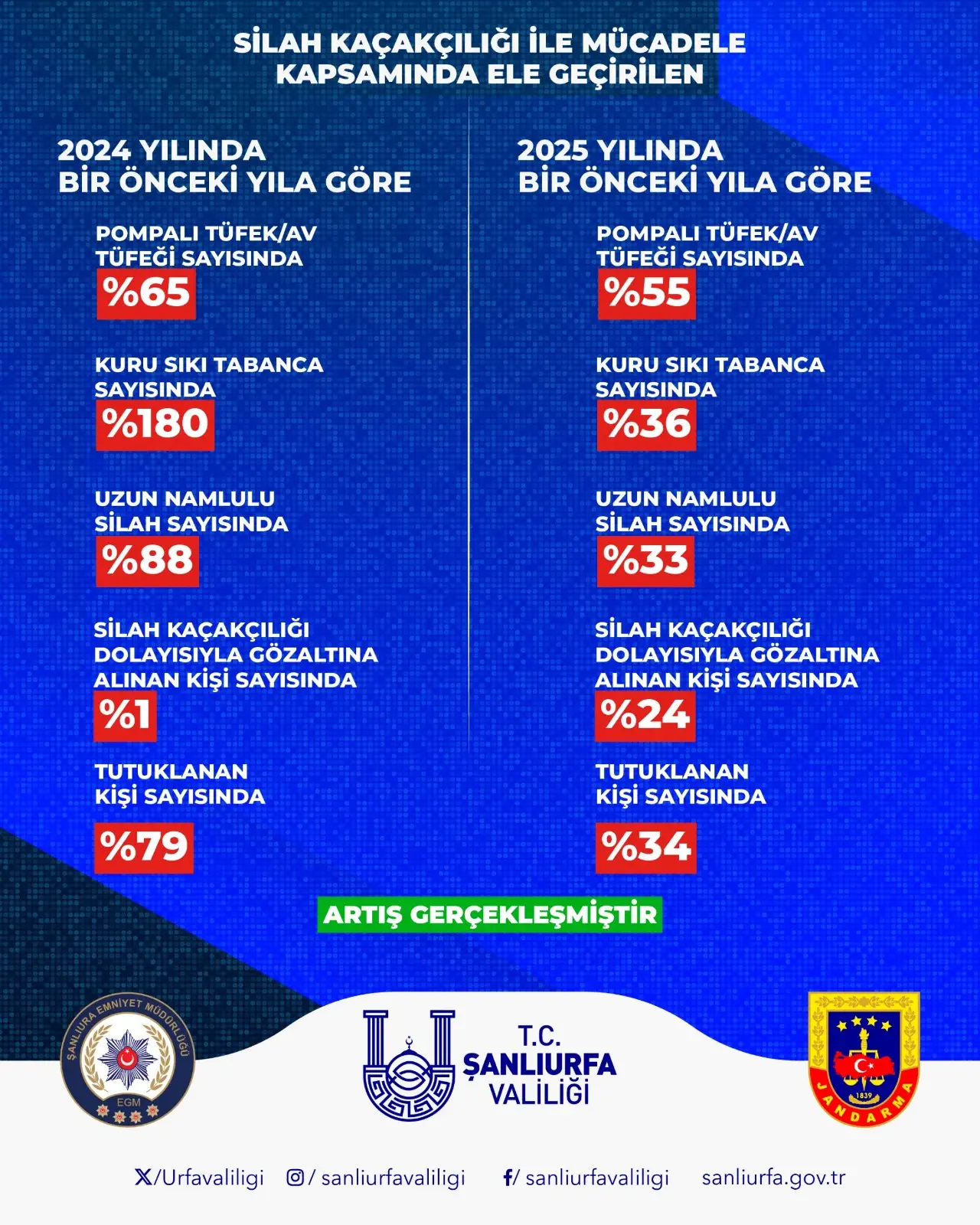 “Şanlıurfa’nın asayiş ve huzurunu daha iyi seviyelere getirmek için yaptığımız sürekli, kararlı ve planlı çalışmalar sonuçlarını veriyor. Emniyet ve Jandarma birimlerimizle birlikte; asayişi sağlamak, olayları önlemek ve suç işleyenleri adalete teslim etmek amacıyla büyük bir gayretle çalışıyoruz. Temel hedefimiz, vatandaşlarımız için tam anlamıyla bir huzur ve esenlik ortamı oluşturmaktır.”