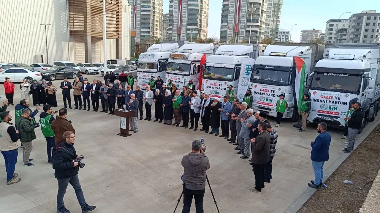 Şanlıurfa İHH İnsani Yardım Vakfı, Gazze’deki siviller için hazırladığı üçüncü insani yardım konvoyunu dualarla uğurladı. Şanlıurfa halkının büyük duyarlılığıyla toplanan yardımların Gazze’deki zorlu kış şartlarına karşı önemli bir destek oluşturması hedefleniyor. Hazırlanan tırlarda öncelikli ihtiyaçlar titizlikle belirlenerek yüklemeler gerçekleştirildi.