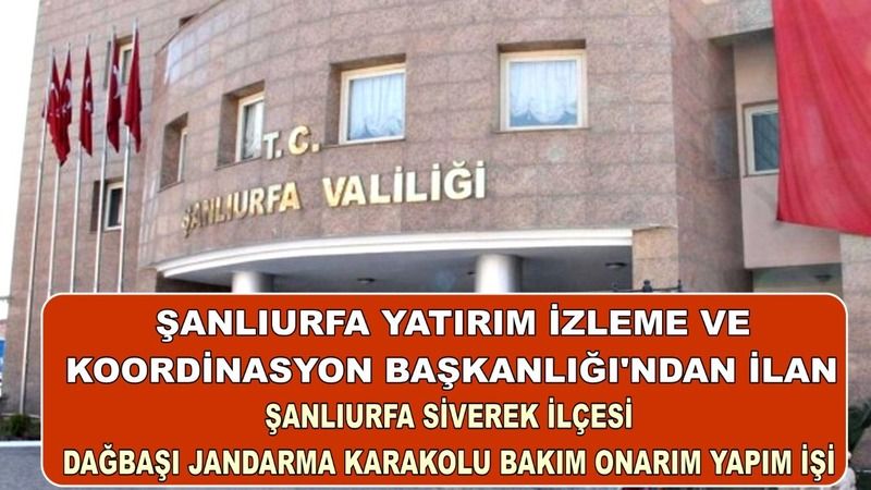 ŞANLIURFA SİVEREK İLÇESİ DAĞBAŞI JANDARMA KARAKOLU BAKIM ONARIM YAPIM İŞİ yapım işi 4734 sayılı Kamu İhale Kanununun 19 uncu maddesine göre açık ihale usulü ile ihale edilecek olup, teklifler sadece elektronik ortamda EKAP üzerinden alınacaktır.  İhaleye ilişkin ayrıntılı bilgiler aşağıda yer almaktadır: