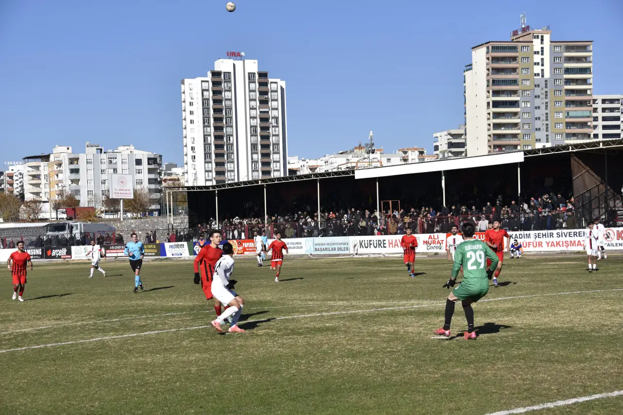 Bölgesel Amatör Lig (BAL) 3. Grup’ta mücadele eden Şanlıurfa'nın Siverek Belediyespor, Firkan Tüysüz Şehir Stadyumu’nda saat 13.00’te oynanan maçta Elbistanspor’u ağırladı. Şanlıurfa temsilcisi, taraftarlarının coşkulu desteğiyle maça hızlı bir başlangıç yaptı. Ev sahibi ekip, şampiyonluk yolunda bir engeli daha aşarak rakibini farklı bir skorla mağlup etti.