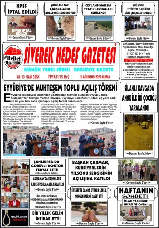 Haberler Gündem Siverek Hedef Gazetesi -5 Ağustos Cuma – www.siverekgazeteleri.com Gündem Siverek Hedef Gazetesi -5 Ağustos Cuma – www.siverekgazeteleri.com 05-08-2022 13:07 309 OKUNMA .