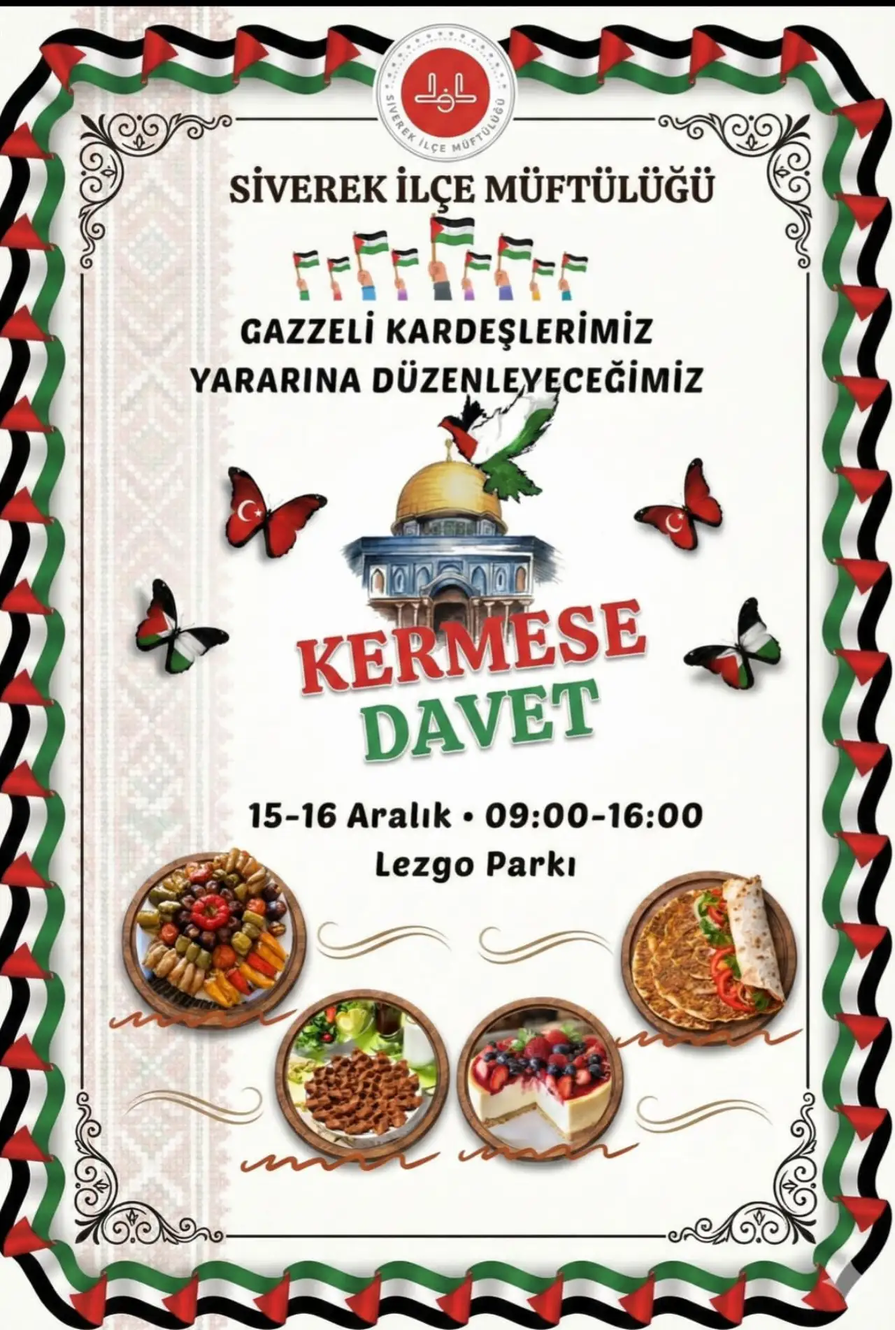 Kermes, ilçe merkezinde önemli bir toplanma alanı olan Lezgo Parkı'nda gerçekleştirilecek. İki gün sürecek olan bu dev etkinlik, 15 Aralık ve 16 Aralık tarihlerinde düzenlenecek. Bu tarihlerde Siverekliler, hem hayırlı bir amaca hizmet edecek hem de sosyal bir etkinlikte bir araya gelme fırsatı bulacaklar. Kermesin ana amacı, toplanan gelirle Gazze'deki kardeşlerin temel ihtiyaçlarının karşılanmasına katkı sağlamaktır.