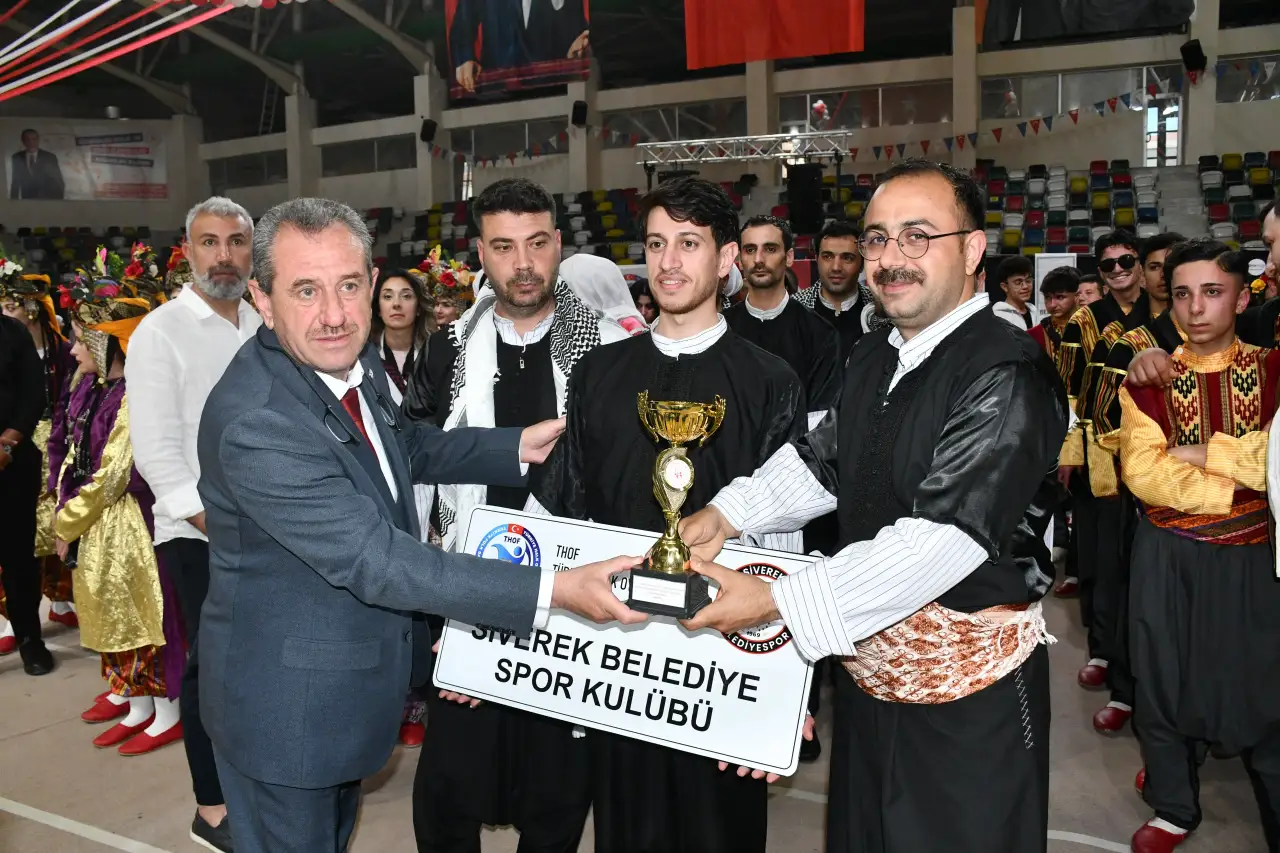 Şanlıurfa'nın Siverek Belediyespor Kulübü Halk Oyunları Ekibi, Türkiye Halk Oyunları Federasyonu tarafından Kilis’te düzenlenen bölge yarışmasında unutulmaz bir performans sergileyerek ikincilik kupasını kazandı. "Büyükler" kategorisinde 7 kulübün kıyasıya mücadele ettiği yarışmada, Siverek ekibi özgün figürleri ve enerjik sahne performansıyla izleyenleri kendine hayran bıraktı. Kilis Şehit Ali Osman Kapalı Spor Salonu’nda gerçekleşen organizasyon, hem yarışmacılar hem de izleyiciler için heyecan dolu anlara sahne oldu.