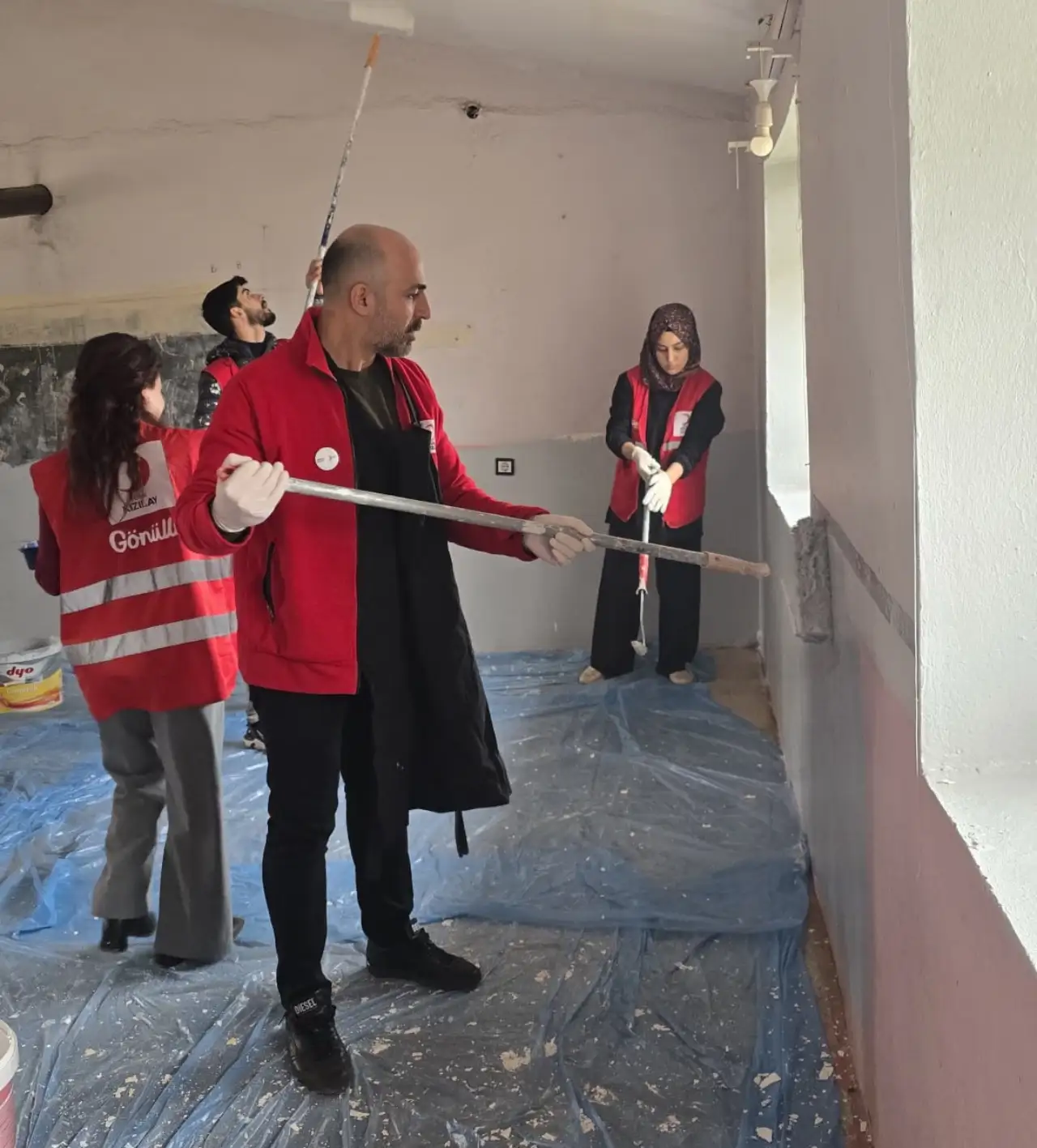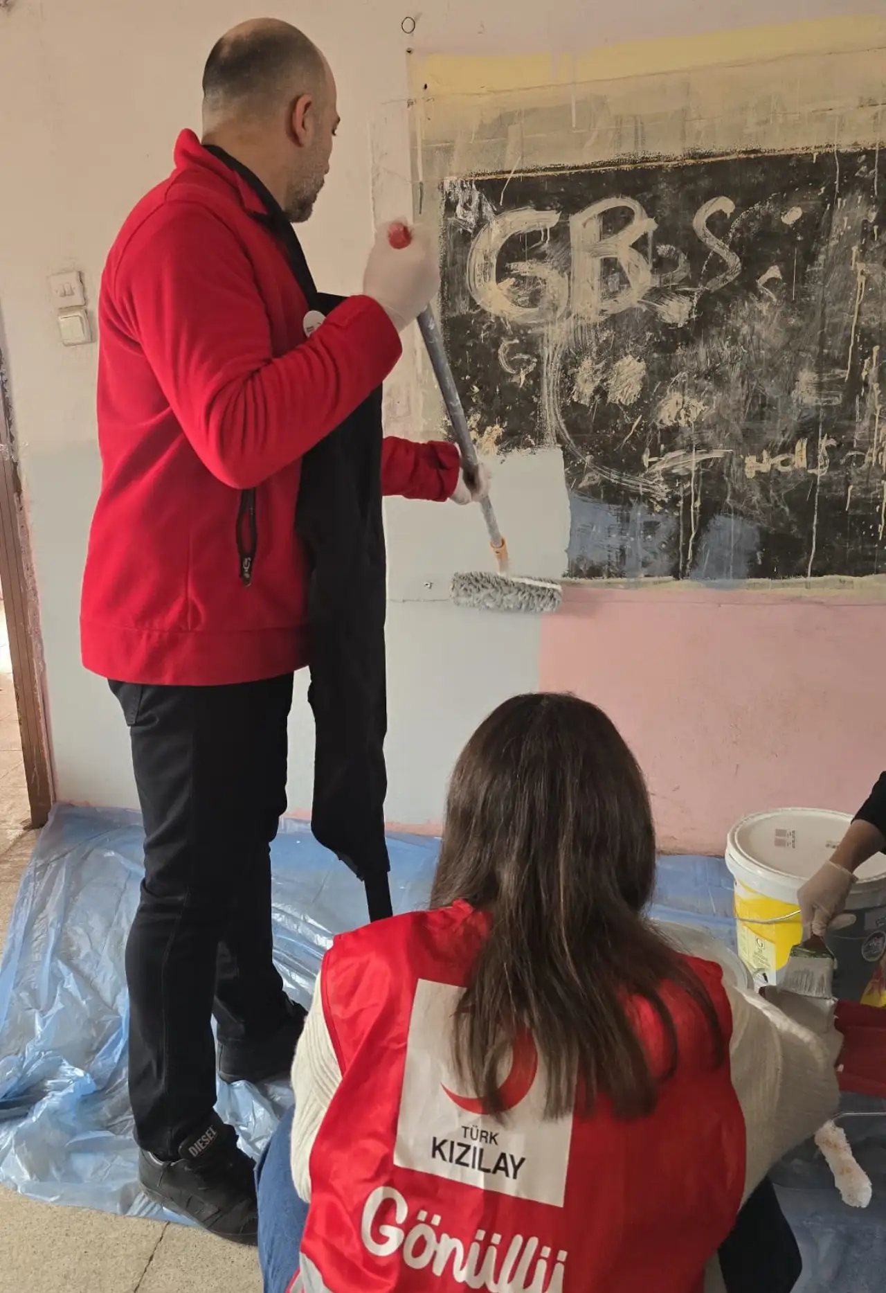 Kızılay Siverek Şube Başkanı Mehmet Sırrı Karahanlı’nın bizzat eşlik ettiği ziyaret, tam bir imece usulü çalışma atmosferine dönüştü. Kızılay gönüllüleri, okulun solan duvarlarını canlandırmak ve öğrencilere daha ferah bir sınıf ortamı sunmak için ellerine fırçaları aldı. Sabahın erken saatlerinden gün batımına kadar süren bu hummalı mesaide, sınıflar ve ortak kullanım alanları titizlikle boyandı. Başkan Karahanlı, gönüllülerle omuz omuza çalışarak boya ve tadilat işlemlerine katılırken, okulun fiziki standartlarını yükseltmenin çocukların psikolojik gelişimine sağlayacağı katkıya dikkat çekti.