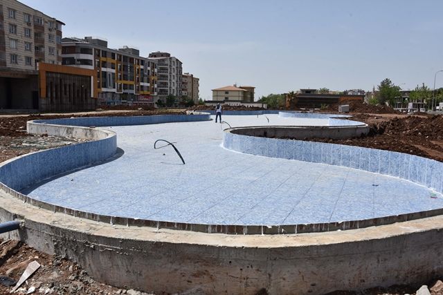 Siverek Belediyesince bir süre önce yapım çalışmalarına başlanan Ofis Parkta süs havuzu, yürüyüş yolları ve idari binaların inşası sürüyor.
