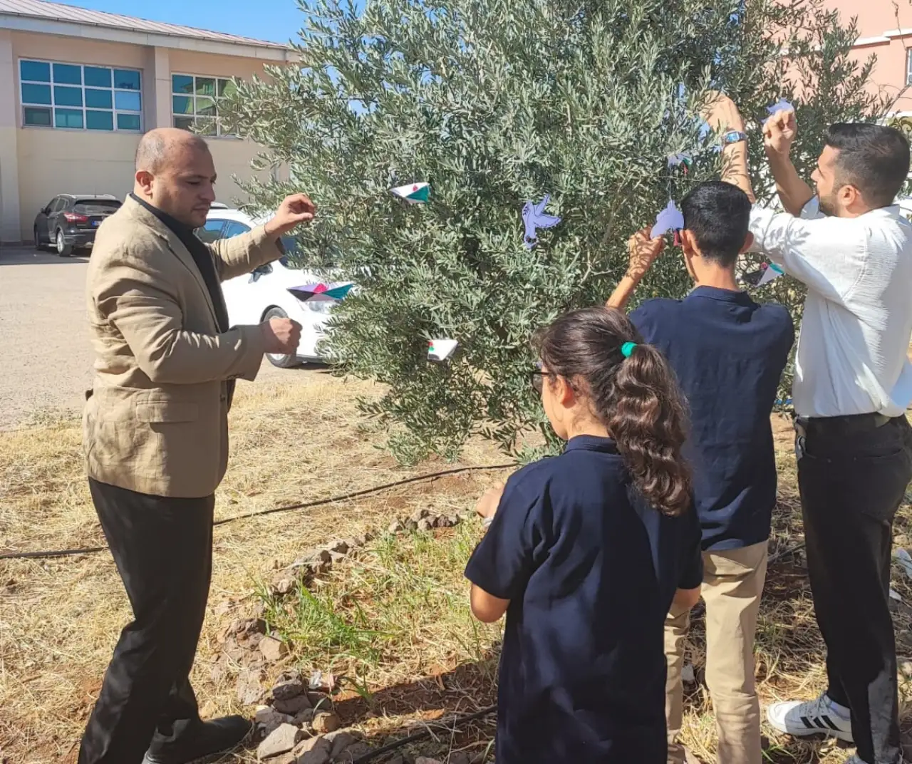Hazırlanan güvercinler ve vapurlar, okul bahçesindeki zeytin ağacına asıldı. Bu anlamlı detay, barışın köklü bir inanç ve dayanışmayla büyüyeceğini sembolize etti. Öğrenciler, her bir süslemeyi Filistinli çocuklar için diledikleri özgür bir gelecek umuduyla astı. Etkinliğe katılanlar, “Barış güvercinleri her daim özgürce uçsun” diyerek dileklerini hep birlikte paylaştılar.