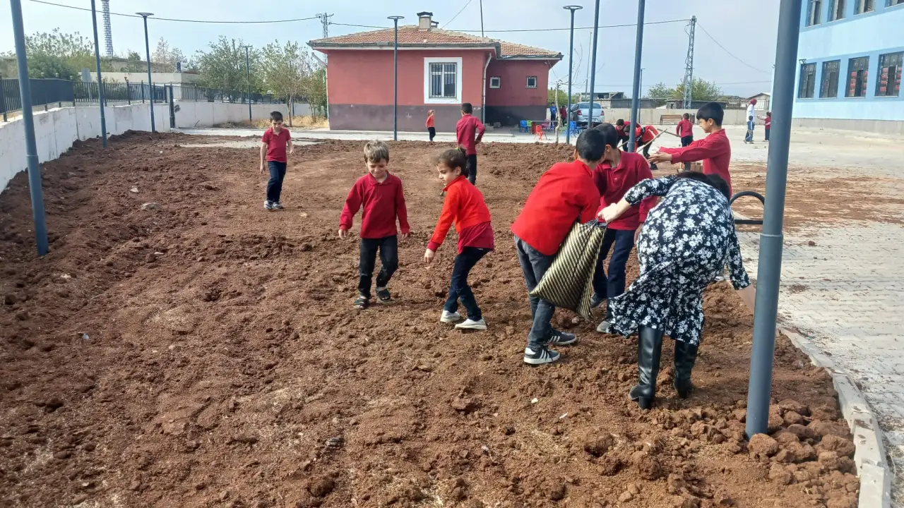 Toprak düzenlemesinin ardından okul bahçesinde çim serimi ve ağaç dikimi çalışmalarına da başlandı. Öğrenciler, öğretmenleriyle birlikte diktikleri her fidanın geleceğe umut olacağı bilinciyle çalışıyor. Belediye tarafından sağlanan ağaç fidanları, okulun yeşil bir yaşam alanına dönüşmesine katkı sunacak. Böylece çocuklar hem çevre bilinci kazanıyor hem de emeklerinin meyvesini yıllarca görme fırsatı bulacak.