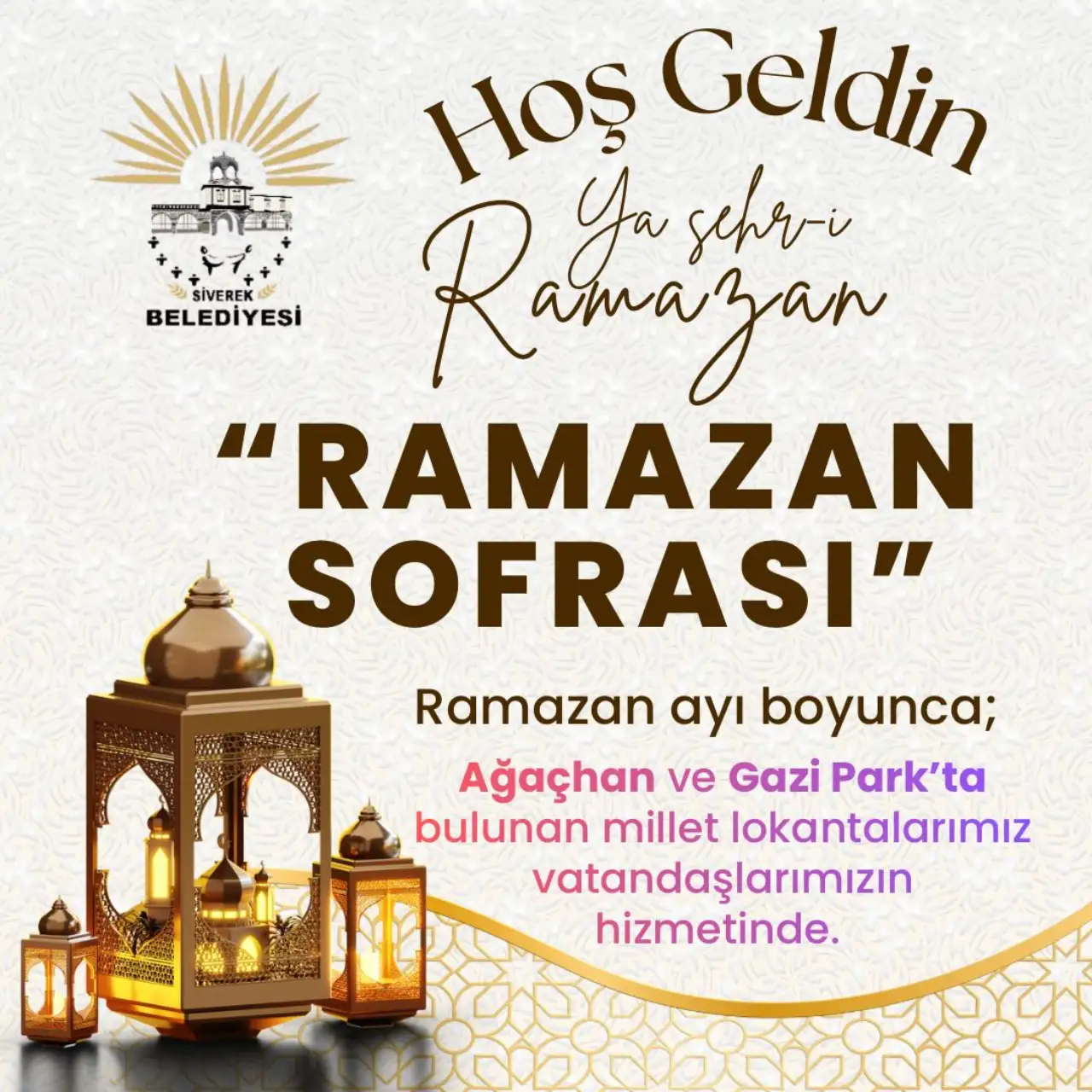 “Siverek Belediyesi olarak, mübarek Ramazan ayının ruhuna yakışır bir şekilde tüm hemşehrilerimizi aynı sofrada buluşturmanın mutluluğunu yaşıyoruz. Sosyal Hizmetler Müdürlüğümüzce koordine edilen ‘Ramazan Sofrası’ projemiz kapsamında, Ağaçhan ve Gazi Park Millet Lokantalarımızda iftar yemeklerimizi tamamen ücretsiz olarak sunacağız. Bizim amacımız, Siverek’te hiç kimsenin iftar saatinde boynunun bükük kalmaması ve bu bereketin her eve, her gönüle girmesidir. Tüm halkımızı bu büyük gönül sofrasına davet ediyor, hayırlı Ramazanlar diliyoruz.”