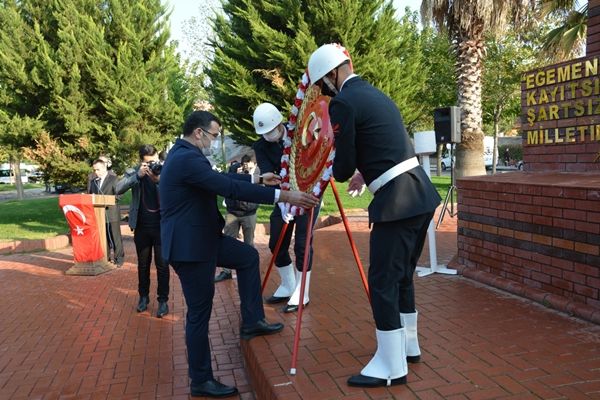Cumhuriyet meydanında düzenlenen törende, İlçe Kaymakamı Mustafa Çiftçiler, Belediye Başkan Vekili Faruk Karakayalı, 107. Topçu Alay Komutanı Albay Recep Çalışkan tarafından Atatürk Anıt’ına çelenk konuldu.