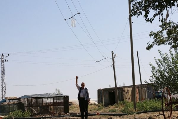 Bazı tahta direkler düşmek üzere bunları tellerle bağladık. Tellerin birbirine sürtünüp düşmemesi için pet şişelerle tahtalarla birbirinden ayırdık. Mahallemize enerji rahmetli Turgut Özal döneminde geldi o gün bu gündür hizmet adına kimse bir çivi çekmedi. Tek umudumuz Cumhurbaşkanımız enerji bakanımız kimse bize kulak vermiyor. Tellerin ve direklerin değişmesini talep ediyoruz “dedi.