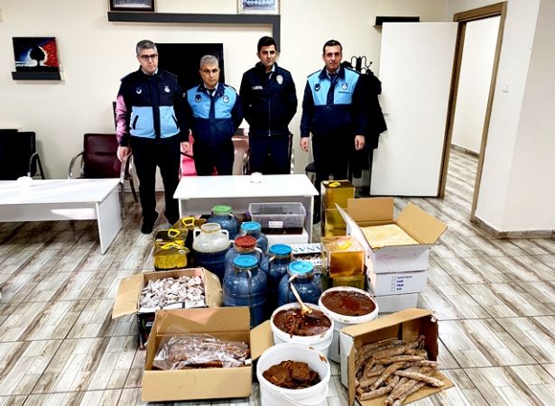 Söz konusu bölgede denetim yapan zabıta ekipleri, içeriği şüpheli 350 kilo pekmez, 200 bal, 50 kilo sucuk, 100 pestil, 100 kilo kesme ile 50 kilo helvaya el koydu.