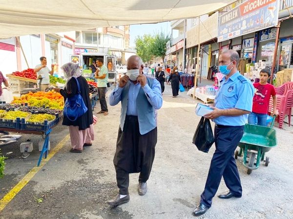Bu kapsamda çalışma yürüten ekipler, semt pazarlarını denetledi. Semt pazarlarında maske ve mesafe denetimi yapan ekipler, maskesiz esnaf ve vatandaşları uyarak maske dağıttı.