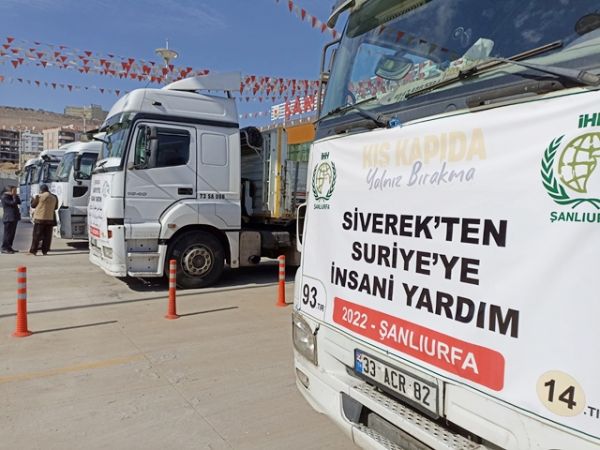 Şanlıurfa’nın Siverek ilçesinde faaliyet gösteren Siverek Yardımlaşma Derneği(SİYAR DER) Başkanı İHH Siverek temsilcisi Cevdet Ökenek tarafından açılan yardım standına Siverek’te bulunan bazı sendikalar Meslek Odaları ve hayırseverlerin katkılarıyla toplan iki tır insani yardım İHH konvoyuyla Suriye’ye gönderildi.