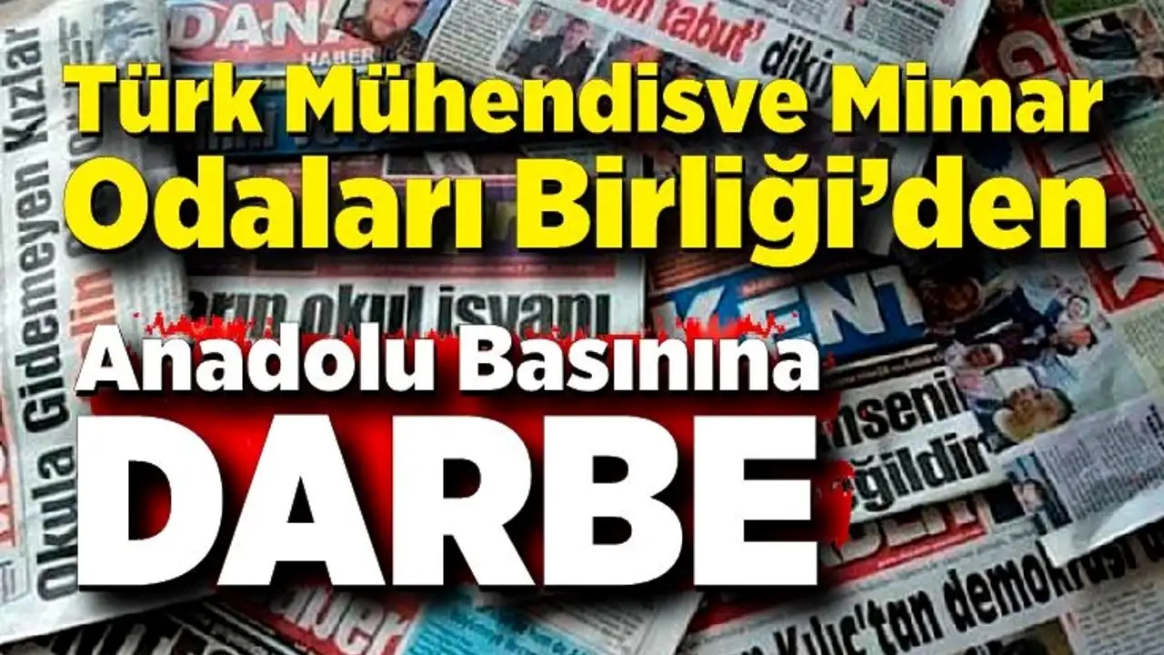 Türk Mühendis ve Mimar Odaları Birliği ( TMMOB), aldığı yeni bir kararla, bünyesindeki odaların genel kurul ilanlarının gazetelerde yayımlanmasını sonlandırdı. Bu karar, Anadolu Basını'ndan büyük tepki topladı. Yerel gazeteciler, TMMOB'un bu adımını, basının ekmeğine göz dikmekle eleştirdi.