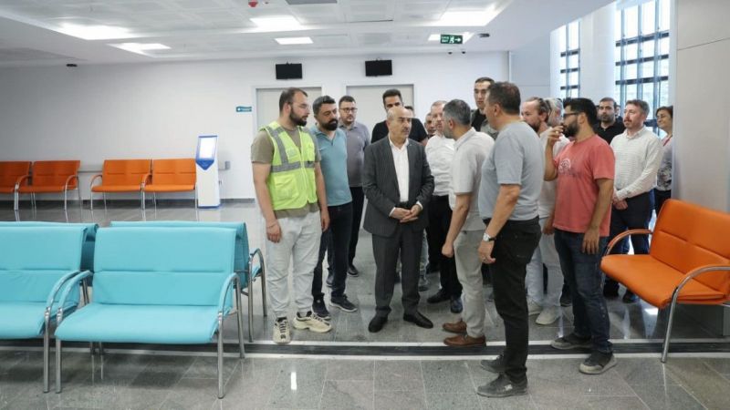 Mardin Eğitim ve Araştırma Hastanesinin 300 yataklı ek binasında hizmete giren poliklinikler bölümünde incelemelerde bulunan Vali Mahmut Demirtaş, birimleri gezerek sunulan hizmetle ilgili İl Sağlık Müdürü Uzman Dr. Saffet Yavuz’dan bilgi aldı.