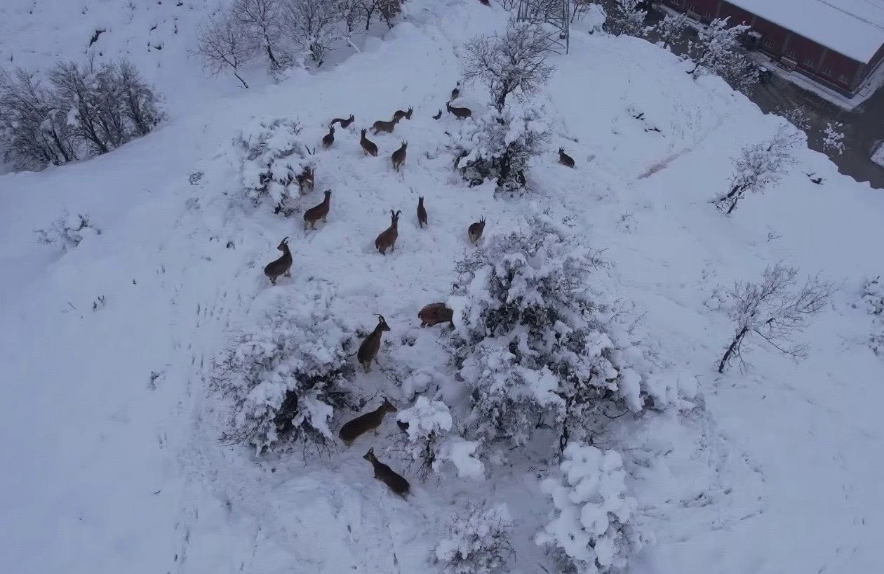 Yoğun Kar Yağışı Yaban Keçilerini Zorluyor