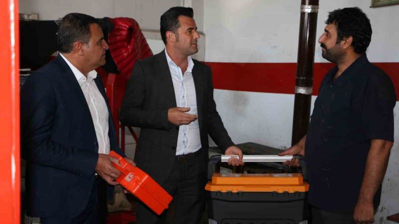 Kentteki 1. ve 2. sanayi sitesindeki esnafı ziyaret ettiklerini ifade eden Beşikci, 16 farklı kalemden oluşan kıyafet, ilk yardım ve alet çantası hediye ettiklerini söyledi.