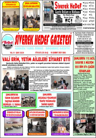 16.02.2021 Tarihli Birinci Sayfa
