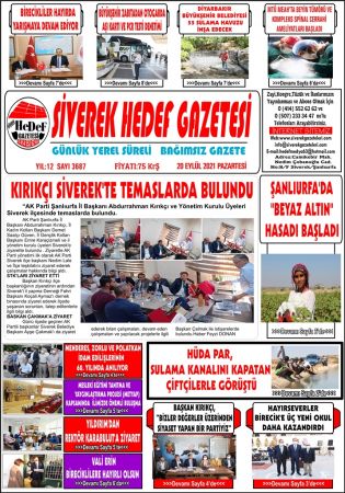 20.09.2021 Tarihli Birinci Sayfa