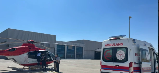 "Ambulans helikopter, 3 günlük bebeğin hayatını kurtarmak için havalandı ve Konya Şehir Hastanesine naklini sağladı." AA