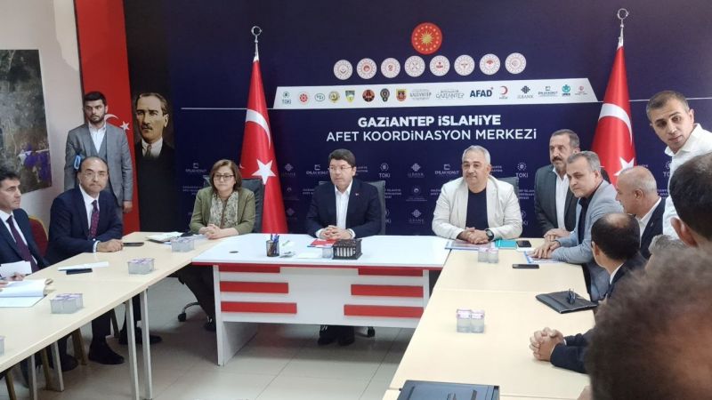 Depremin ağır tahribatlar verdiği 11 il arasında olan Gaziantep’e yapılacak yatırımlar ile Nurdağı ve İslahiye ilçelerinde yürütülen çalışmalar hakkında da bilgi veren Adalet bakanı Yılmaz Tunç, "Bu ziyaretimizde bölgede alınması gereken tedbirler, gereken yasal düzenlemeler konusunda istişarelerimiz oldu. Gaziantep’te yeni kurulan yeni mahkeme sayısı 19 oldu. 12 tane merkezde Asliye Ceza Mahkemesi kurduk. 1 Aile Mahkemesini kurduk. İslahiye’de 3 asliye hukuk mahkemesini kurduk. Nurdağı’nda da 1 Asliye Hukuk Mahkemesini kurduk. Gaziantep merkezde de 2 idare mahkemesi de kurduk. Böyle beklenen dava yoğunluğunu karşılayabilecek mahkeme kurulmasını sağladık, hakimler ve savcılar kurulu kararnamesi ile yeni atamaları gerçekleştirdik. Görevlere başlayarak, yargı sürecini aksatmadan çalışmalar sürdü. Gaziantep Adli Tıp Kurumu bölgeye hitap ediyor, Eylül ayında da Adli Tıp Kurumu binamızın ihalesini gerçekleştireceğiz. Bir de adalet personel eğitim merkezi projemiz var. Bölge eğitim merkezini Gaziantep’e kazandıracağız. İslahiye Adalet binamız hafif hasarlı, 2012 yılında yapılan, sağlam bir binaydı. Şuanda hizmete devam ediyor. Deprem hasarını gidermek için 7.5 milyon TL’lik ödenek aktarmıştık, hasarlar giderilmişti. İslahiye adliye lojmanlarımız. Personelimizin kaldığı konutlar ağır hasarlıydı, yıkıldı. Yeni adliye personeli konutları yapımına başlayacağız. Burada 50 dairelik ihtiyacımız var, yapım sürecini takip ediyoruz. Nurdağı’nda adliyemiz hükümet konağında hizmet veriyordu. Yine hizmetine devam ediyor. Depremde ağır hasar alan adliye lojmanlarımız vardı, onların yerine de yeni binaların yapım sürecini yakından takip ediyoruz" diye konuştu.