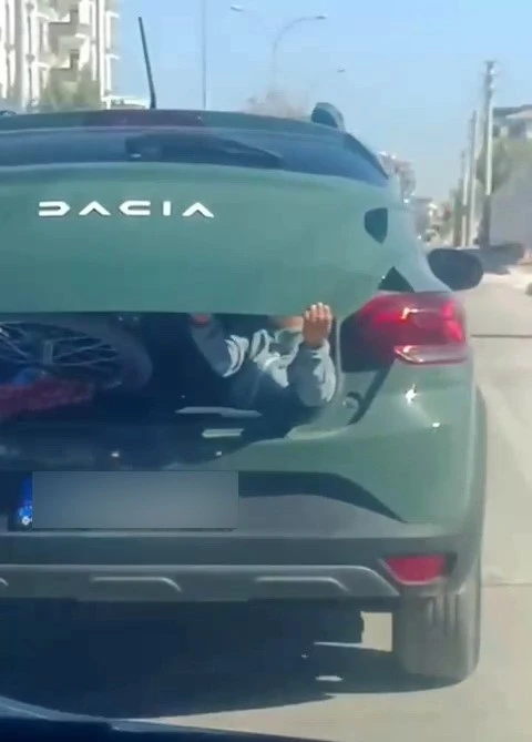 Adıyaman merkez Yeni Mahalle 3. Çevre Yolu üzerinde seyir halinde ilerleyen bir otomobilin bagajına konulan küçük bir çocuk, trafikte şaşkınlık yarattı. Bir yandan minik elleriyle kendini tutmaya çalışan çocuk, diğer yandan da bagaj kapağını kapalı tutmak için çaba gösteriyordu. Bu ilginç ve tehlikeli yolculuk, çevredeki vatandaşlar tarafından cep telefonlarıyla görüntülendi.