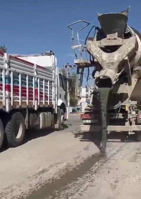 Asfalta Çimento Dökerek İlerleyen Beton Mikseri Tepki Çekti