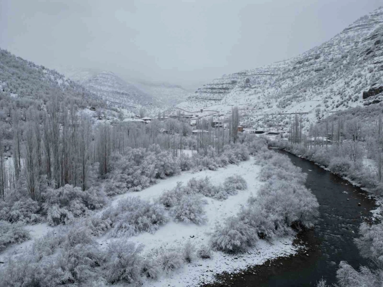 Şırnak’ın Beytüşşebap ilçesinde etkili olan kar yağışı, doğayı beyaza bürüyerek eşsiz manzaralar oluşturdu. Bal ormanlarının karla kaplanması, görsel bir şölen sunarken doğaseverlerin ilgisini çekti.