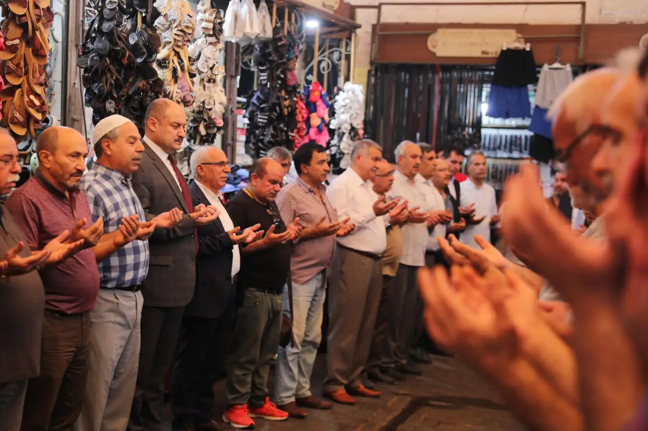 Şanlıurfa Büyükşehir Belediye Başkanı Mehmet Kasım Gülpınar, tarihi hanlar bölgesinde yıllardır süregelen geleneksel esnaf duasına katıldı. Her sabah erken saatlerde düzenlenen bu etkinlikte esnaflar, hayırlı işler ve helal kazançlar için dua ediyor. Başkan Gülpınar, dua sırasında esnaflarla bir araya gelerek onların dilek ve temennilerine ortak oldu.