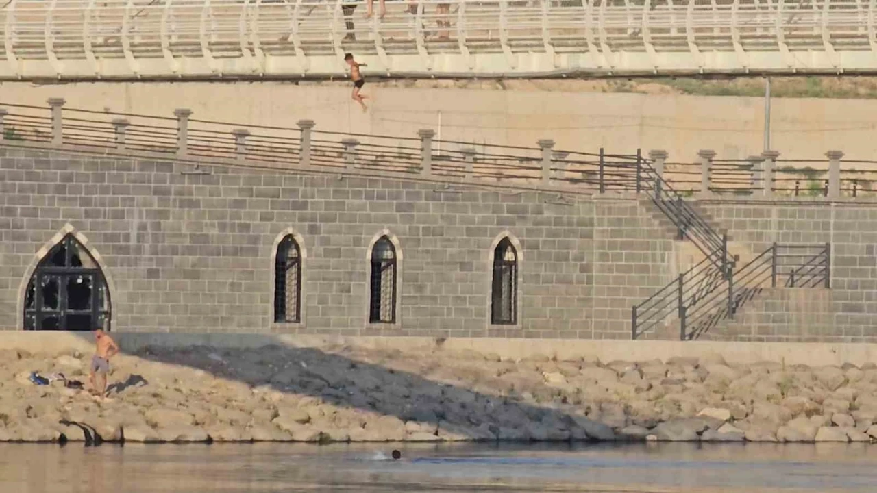 Köprü demirlerine tırmanarak kendilerini Dicle Nehri’nin serin sularına bırakan çocukların görüntüleri, çevrede bulunan vatandaşlar tarafından cep telefonuyla kaydedildi. Anbean kaydedilen görüntüler, izleyenlerin yüreklerini ağızlarına getirdi.