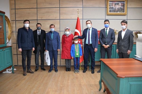 Ziyarette minik şampiyonla bir süre sohbet eden İl Milli Eğitim Müdürümüz İsmail YAPICIER, öğrencimizi ağırlamaktan dolayı duyduğu memnuniyeti dile getirerek şunları söyledi : ” Bugün burada Halil’in ilimize kazandırdığı başarının mutluluğunu yaşıyoruz, yaşıtlarına göre daha başarılı olan bir öğrenci olan öğrencimizin yeteneğinin ortaya çıkarılmasında emeği geçen ailesine, okul idarecilerine ve sınıf öğretmenine teşekkür ediyor, Eyyübiye Günbalı İlkokulundan, bir köy okulundan gelerek binlerce öğrenci arasından birinciliği alarak gurur kaynağımız olan Halil’in başarılarının devamını diliyorum.”