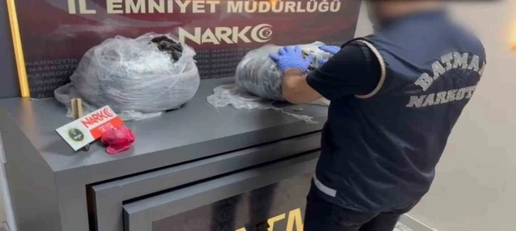 Batman İl Emniyet Müdürlüğü Narkotik Suçlarla Mücadele Şube ekipleri, uyuşturucu ile mücadele kapsamında gerçekleştirdikleri titiz çalışmalara bir yenisini daha ekledi. Ekipler, durumundan şüphelenerek durdurdukları bir araçta yaptıkları aramada, yüklü miktarda uyuşturucu madde ele geçirdi. Araç içerisinde 6 kilo 250 gram skunk uyuşturucu maddesi bulundu.